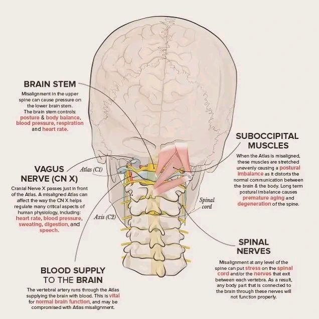 So, when the atlas shifts out of place, whether from trauma, repetitive stress, or poor posture, it can create a ripple effect throughout the entire body.